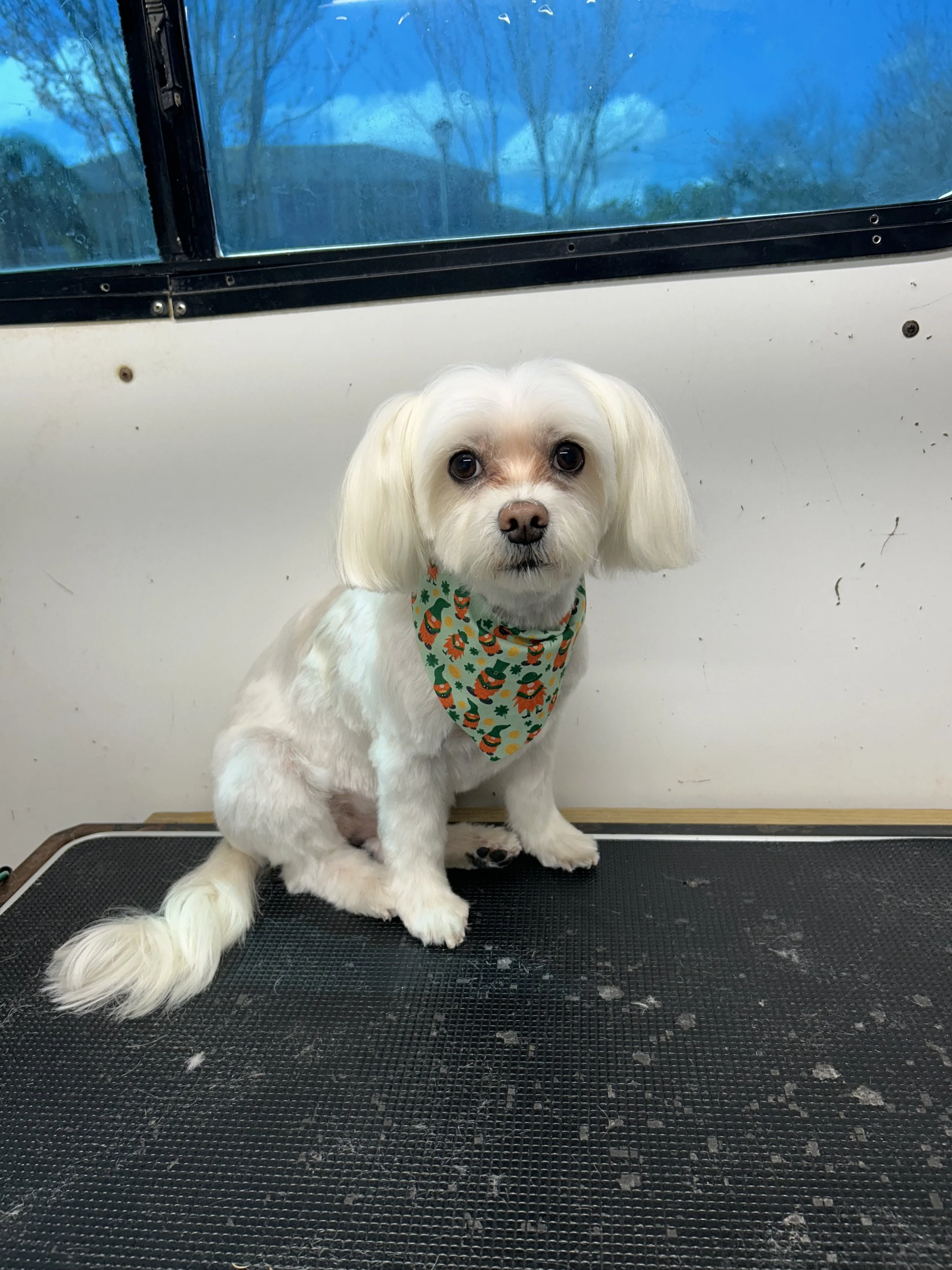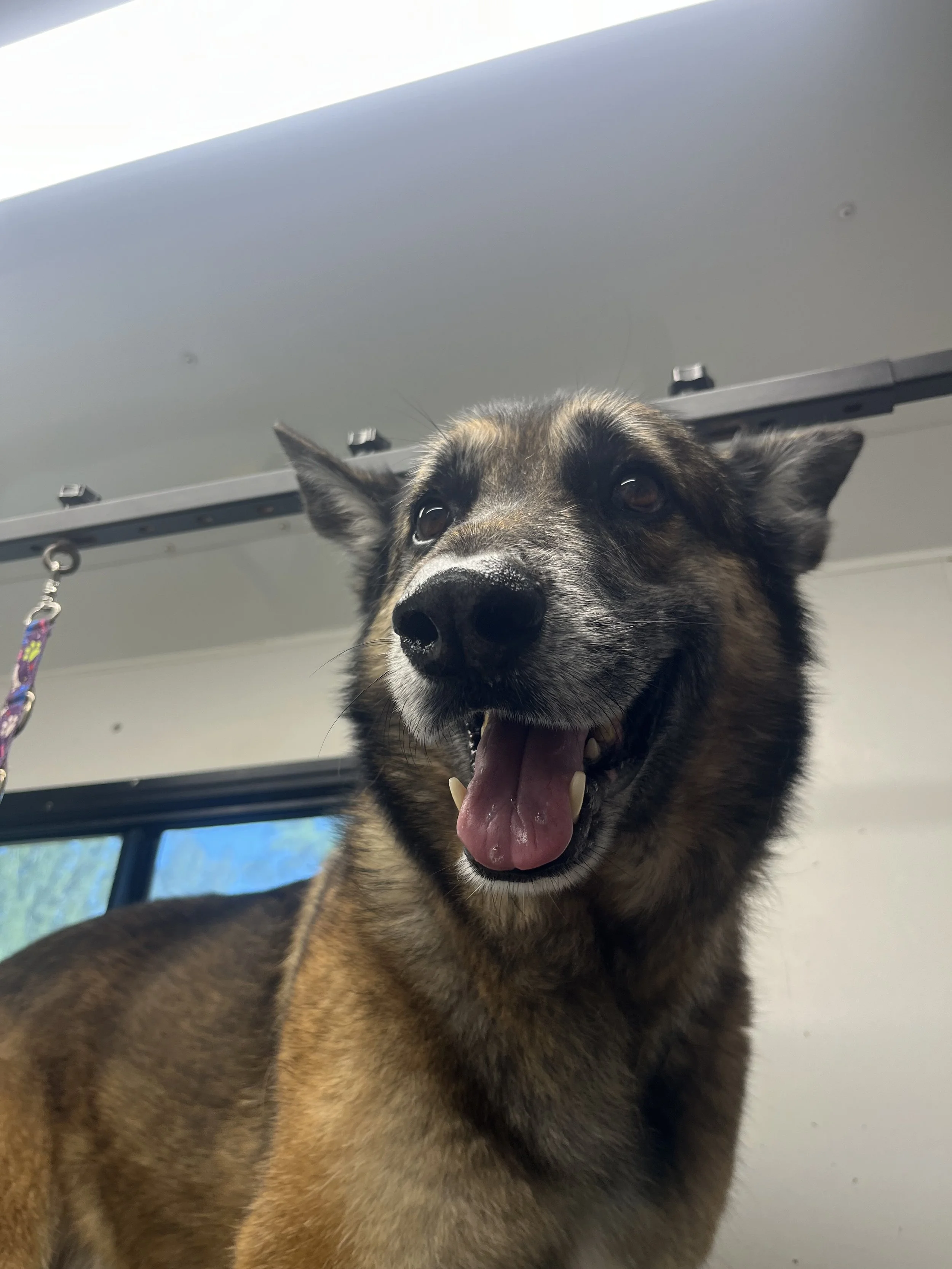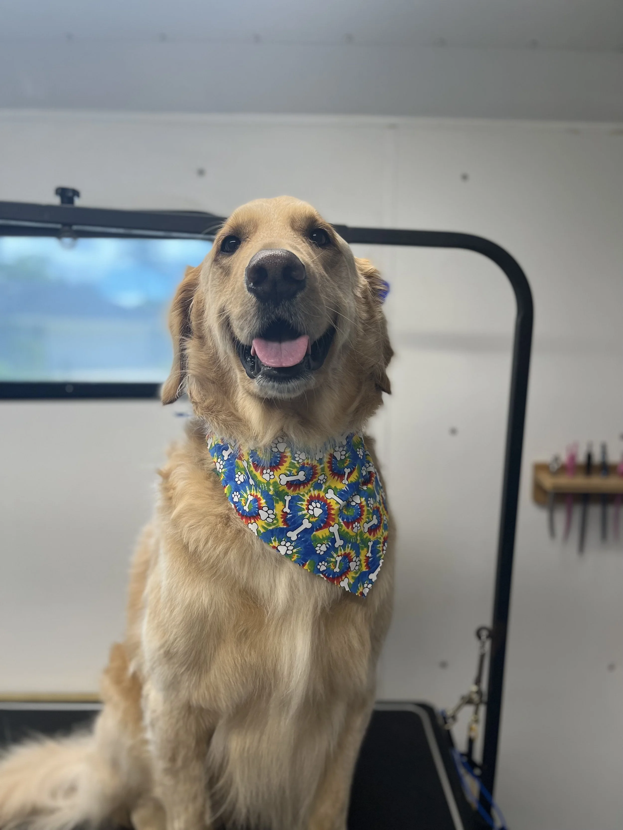 Fully equipped mobile salon bus serving pets with love, patience and care.